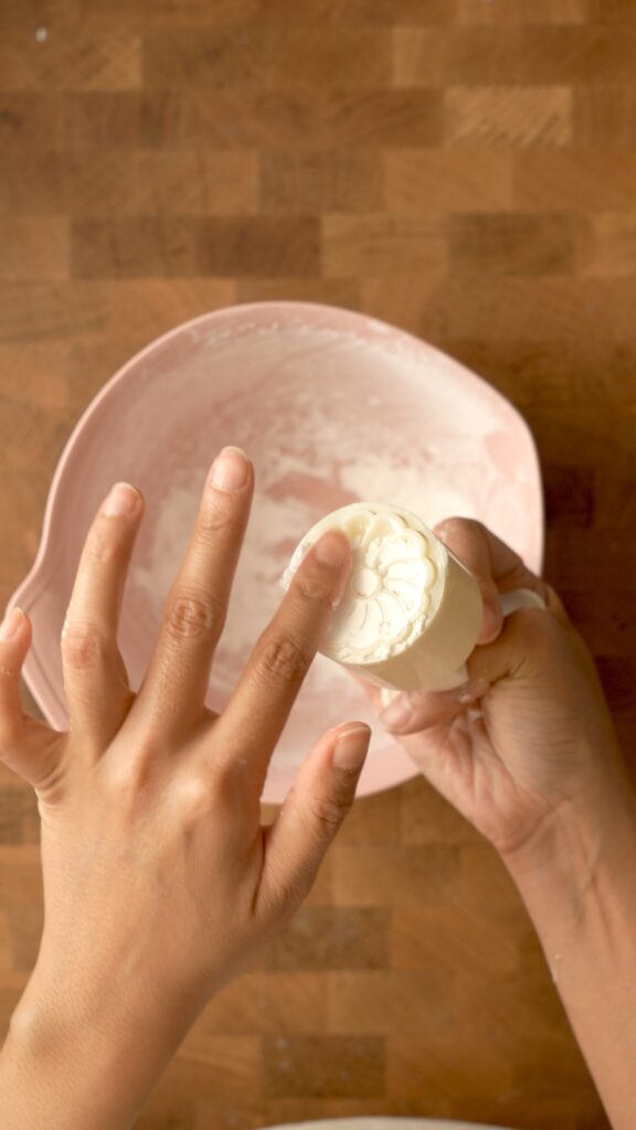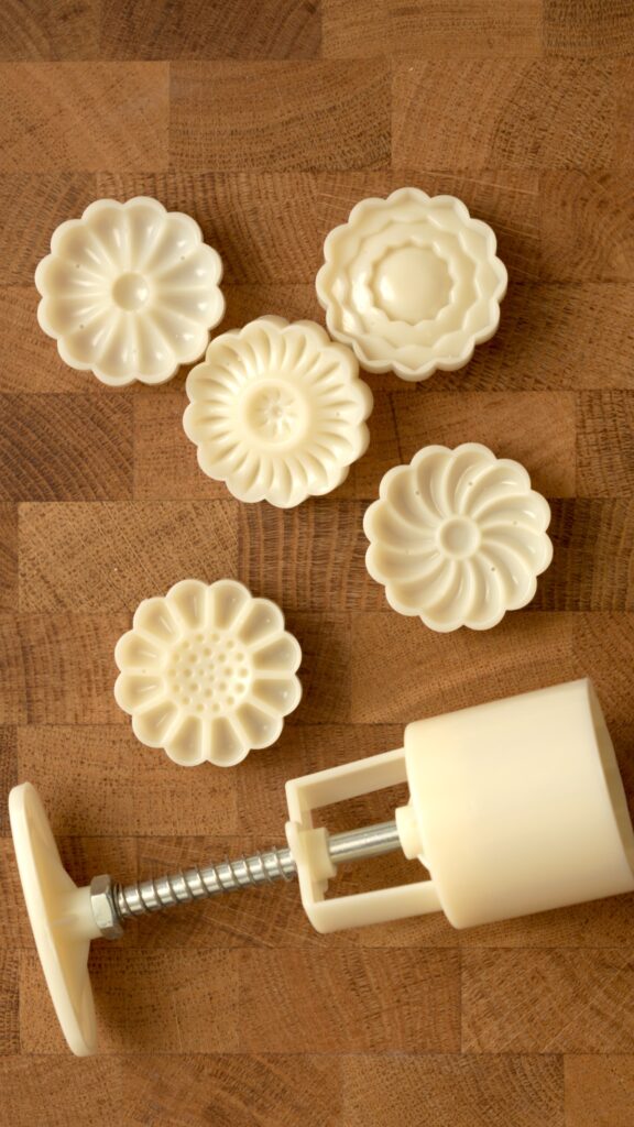 These are the molds I used to shape the cookies. They are used for traditional mooncakes but they work great for cookies too!